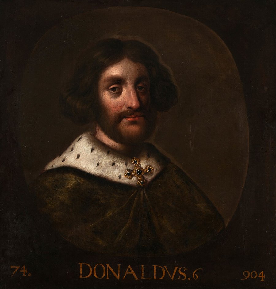 In the year eight hundred eighty-nine, Donald seized the throne from his cousin Giric, following the death of his uncle Àed Mac Cináeda. This act of usurpation marked the beginning of his tumultuous reign, characterized by continuous conflict with Viking forces that threatened his kingdom. His fierce determination and military prowess led to several victories against these invaders.