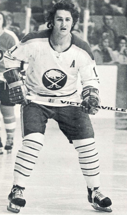 Perreault's entire career unfolded with the Buffalo Sabres, where he remains the franchise's all-time leader in several categories, including career regular season games played, goals, assists, points, game-winning goals, and shots on goal. Serving as team captain from nineteen eighty-one until his retirement in November nineteen eighty-six, he led the Sabres to eleven consecutive playoff appearances, concluding with the nineteen eighty-four to eighty-five season.