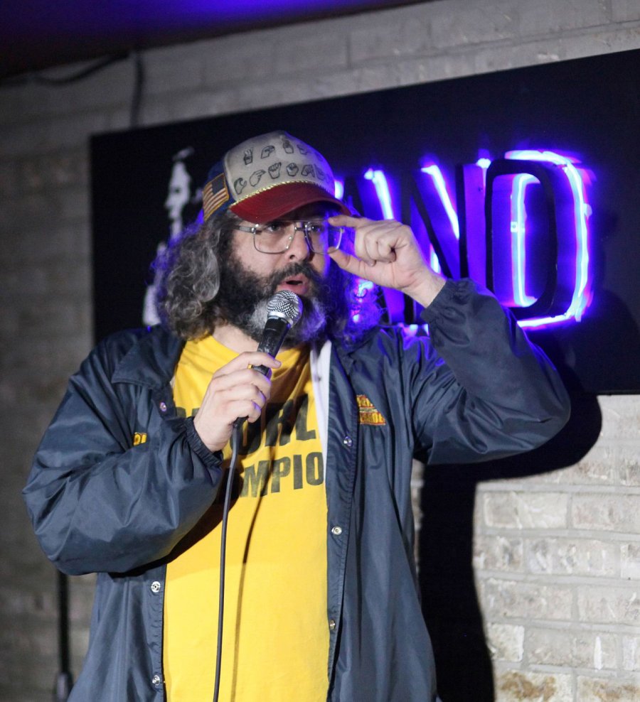 Friedlander's distinctive appearance is a hallmark of his public persona. He is often seen sporting oversized glasses, shaggy hair, and a casual t-shirt and trucker hat, frequently adorned with slogans like 'world champion'. This unkempt look has become synonymous with his stand-up comedy and various acting roles, making him a recognizable figure in the comedy scene.